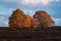 Een groepje bomen op de Veluwe vangt het laatste licht van de dag.