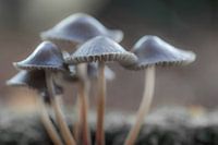 Kleine paddestoelen (3 cm) met grijze hoed.
