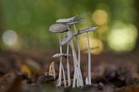 Groepje paddenstoelen op lange stelen in de herfst op de Veluwe