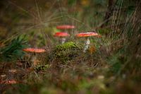 Koop de foto Groepje vliegenzwammen van gea strucks als print op canvas, aluminium dibond, (ingelijste) fotoprint, behang en ArtFrame. Voor jou op maat geprint in Fine-Art kwaliteit.