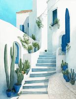 Digitale aquarel van een huis in Griekse stijl