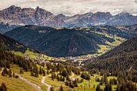 Vergezicht in het Val Gardena vanaf de top van de Passo Gardena in de Italiaanse Dolomieten
