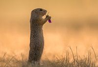 Koop de foto Grondeekhoorn met een lekker bloemetje van Larissa Rand op canvas, aluminium dibond, (ingelijste) fotoprint, behang en ArtFrame, op maat geprint in Fine-Art kwaliteit.