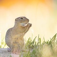 Grondeekhoorn uit Oostenrijk. Deze diertjes hebben een grote aaibaarheidsfactor en zijn erg nieuwsgierig. Het wazige gras voor de lens zorgt voor een heerlijk rustig beeld.