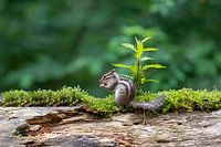Liefelijk tafereel van een etende Siberische grondeekhoorn in het Wandelbos in Tilburg, Noord-Brabant.