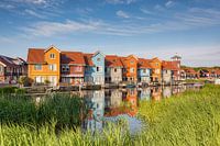In de stadshaven Reitdiephaven in Groningen vindt u deze kleurrijke huizen gebouwd in de Scandinavische bouwstijl.