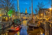 Oude zeilboten in de binnenstad van Groningen tijdens het Winter Welvaart feest met mooie verlichting.