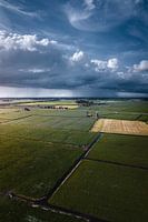 In de verte boven het prachtige Groninger ommeland hangt een regenbui. Molen De Jonge Held trotseert alles wat langs zijn pad komt.