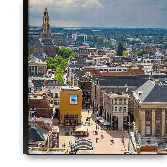 Jouw gekozen kunst op doek, gespannen in een aluminium frame. Snel en eenvoudig te verwisselen voor een frisse uitstraling en helemaal zoals jij het wilt.