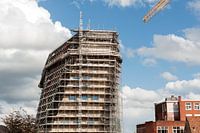Groningen The Netherlands The new cultural centre Groninger Forum being built with scaffolding surrounding it.