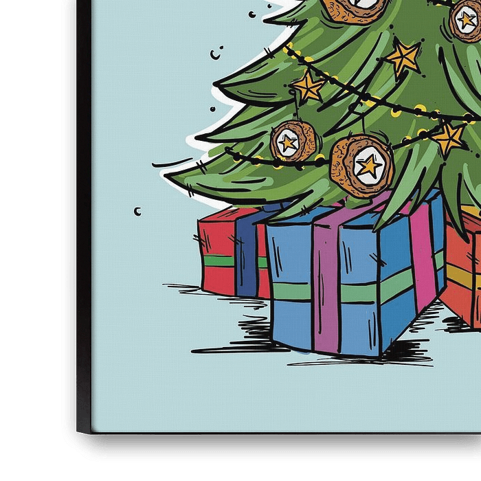 Illustratie van een Groningse kerstboom met eierballen als kerstballen.