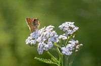 Deze vlinder (groot dikkopje) stond geduldig op de mooie witte bloemen. De wereld van macrofotografie is geweldig! De kleinste insecten die normaal gesproken nooit worden opgemerkt, blijken schitterende wezens te zijn met enorme ogen en vreemde voorkomens.