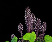 Bloeiend Groot Hoefblad langs de Ringvaart van de Haarlemmermeer. Met zwarte achtergrond