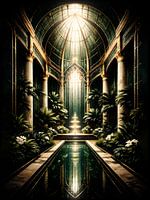 Koop de illustratie Groot botanisch solarium met gouden licht van uwidya als print op canvas, aluminium dibond, (ingelijste) fotoprint, behang en ArtFrame. Voor jou op maat geprint in Fine-Art kwaliteit.