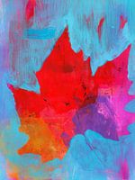 Groot kleurrijk blad is een acrylschilderij in portretformaat geschilderd door de kunstenaar Karen Kaspar. Een enkel groot blad van een plataan wordt door de herfstwind door de lucht geblazen. De achtergrond is abstract geschilderd in lichtblauwe tinten. Het gebladerte straalt in sterke warme herfstkleuren van goud, oranje, rood, roze en paars. De kleuren van het gebladerte schemeren ook steeds weer door het blauw van de lucht op de achtergrond. De bladeren van de plataan lijken qua vorm op die van de esdoorn, maar kunnen veel groter zijn. 482