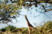 Deze giraffe wilde graag poseren in het perfecte natuurlijke kader, de bosjes in Erindi.