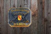 historisch gietijzeren bord, Groothertogdom Baden op rustieke houten wand