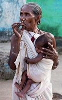 Een grootmoeder draagt het kind van haar recent overleden dochter. Haar dochter overleed in het kraambed. Ze behoort tot een van de vele Adivasi stammen die Odisha, in het oosten van India rijk is. De vrouw behoort tot de Didayi Damsel stam en is geheel in traditie in het wit gehuld als teken van rouw.