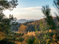 De Großer Zschirnstein biedt veel weidse uitzichten. Maar sommige andere zijn zeer verborgen achter takken en bladeren. Dit uitzicht behoort tot de tweede groep. De Pfaffenstein neemt niet zoveel plaats in op de foto en toch springt de tafelberg eruit met zijn heldere, majestueuze vorm. De herfstkleuren doen de rest. Een sprookje in…