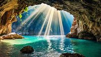 Grot met zonnestralen en zeewater