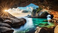Grot met zonnestralen en zeewater