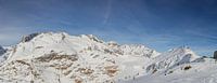 Uitzichtspunt Moosfluh Riederalp met uitzicht op de besneeuwde Aletschgletsjer in januari met blauwe lucht en zonneschijn. Uitzicht op Wallis en Berner Alpen.