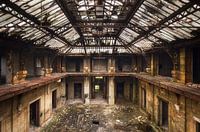 Dit is een foto van een grote hal in een enorm verlaten gebouw, ergens in Frankrijk. De architectuur van het gebouw is prachtig. Gebouwd in de 18e eeuw en al jaren verlaten. Het verval treedt op een interessante manier in werken.
