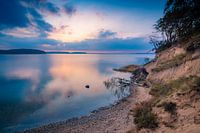 Zonsondergang bij de Großer Jasmunder Bodden met steile kust op het eiland Rügen in de herfst