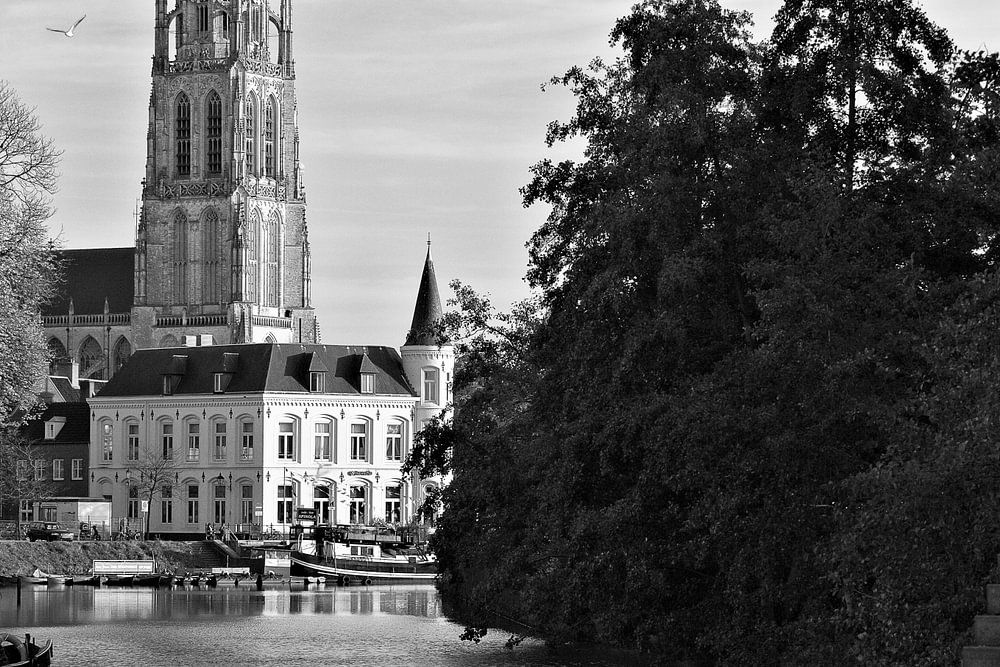 Een foto van de het Spanjaardsgat en de Grote Kerk van Breda uit het boek moNUment in Breda.