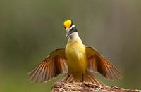 Baltsende Grote Kiskadie (Pitangus sulphuratus) in Costa Rica.