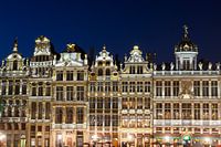 Avondfoto van een paar prachtige statige gildehuizen aan de Grote Markt in Brussel, België.