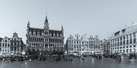 Zwart-wit fotografie Grote Markt met het Koninghuis in het centrum van Brussel bij nacht in België. De Grote Markt staat sinds 1998 op de Werelderfgoedlijst van UNESCO.
