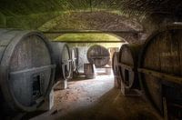 Een verlaten villa met een aantal wijnkelders waar deze grote wijnvaten nog steeds aanwezig zijn.