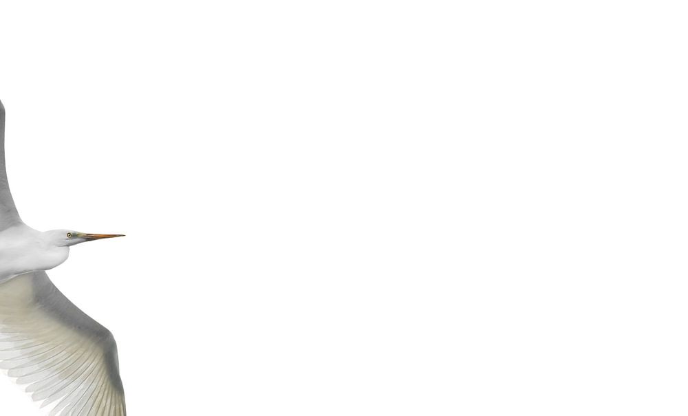 De high-key stijl maakt deze minimalistische afbeelding van een witte vogel op een witte achtergrond nog helderder en zachter.