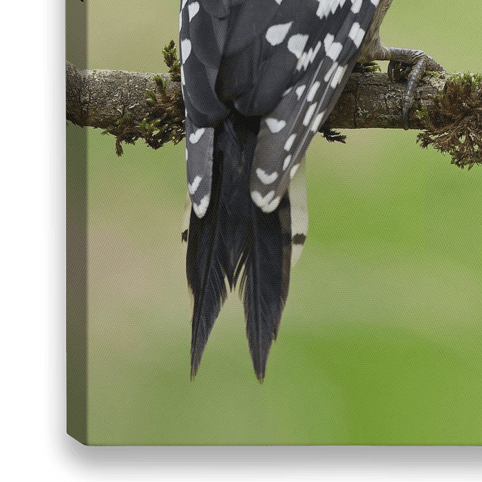 Deze juveniel grote bonte specht (Dendrocopos major) ging even mooi poseren.