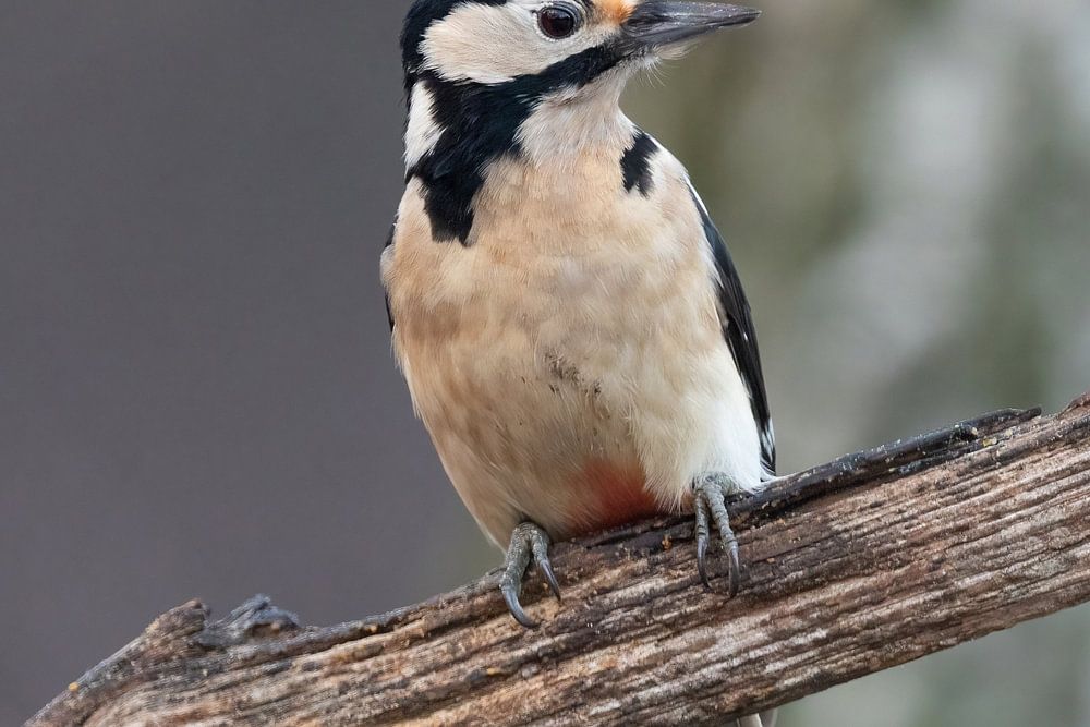 Grote bonte specht op een tak. Gemaakt in Holten.