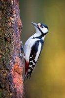 Grote bonte specht. Foto is genomen vanuit de vogelhut bij Otterlo in het Nationaal Park de Hoge Veluwe.