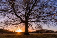 Grote boom en hunebedden met zonnestralen van Dafne Vos