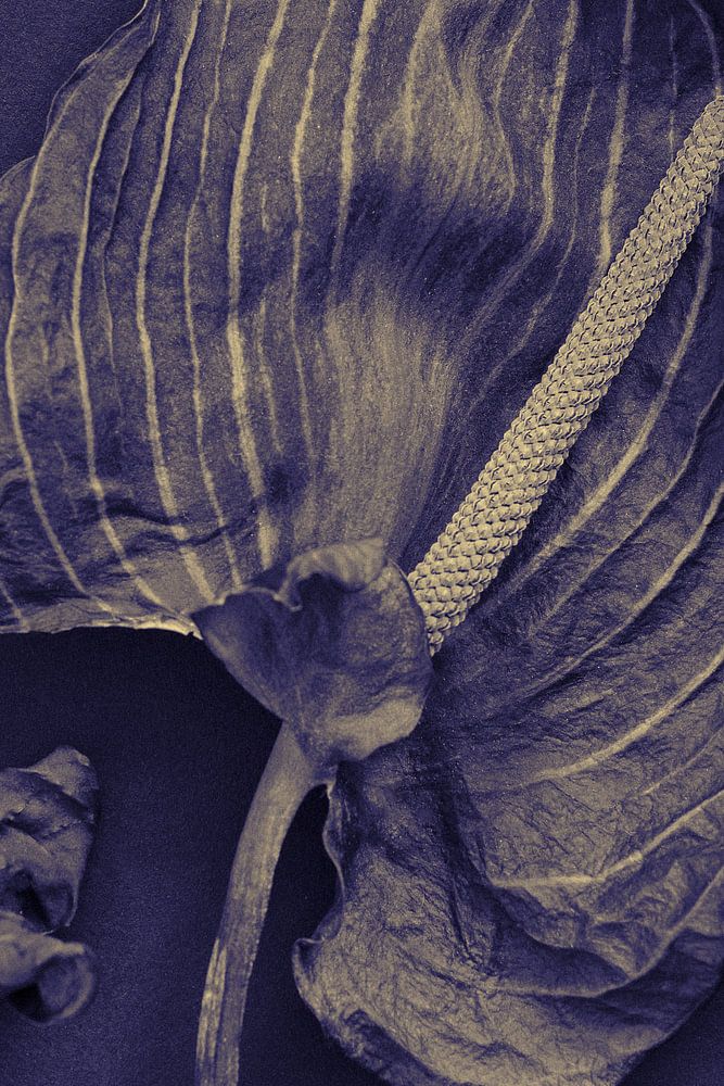 Grote en kleine Anthurium. Compositie van twee gedroogde Anthuriums. Duotone