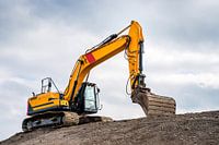 Grote gele graafmachine op een bouwplaats