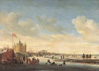 Gezicht op de Grote of Sint-Laurenskerk van Alkmaar vanuit het noordoosten in de winter, met de Friese Buitenpoort, Salomon van Ruysdael (1656)