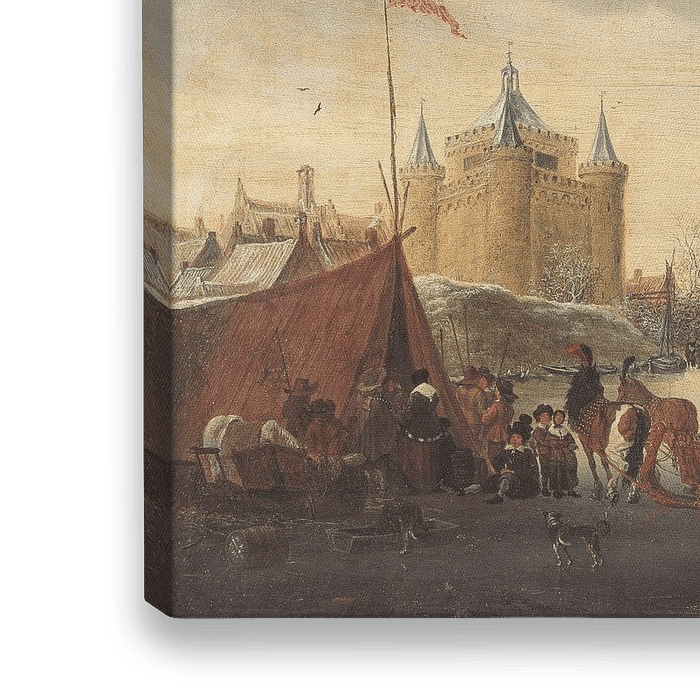 Gezicht op de Grote of Sint-Laurenskerk van Alkmaar vanuit het noordoosten in de winter, met de Friese Buitenpoort, Salomon van Ruysdael (1656)