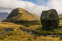 Deze rots biedt bescherming tegen regen en wind, en is gelegen in de corrie op weg naar de top van Bla Bheinn.