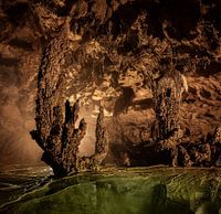 Nguom Ngao grot in Noord Vietnam. Prachtige weerspiegelend water in een grot in de provincie Cao Bang. Ruimtelijke afbeelding. Gemaakt met lange sluitertijd en meerdere foto's voor maximale kwaliteit.