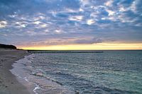 Krib in Zingst aan de Oostzee. Kribben reiken tot in de zee. Landschapsfoto.