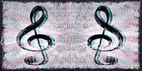 Gespiegelde muzieknoot met grunge effect met mooie tekst over Kustenaars en Muzikanten.