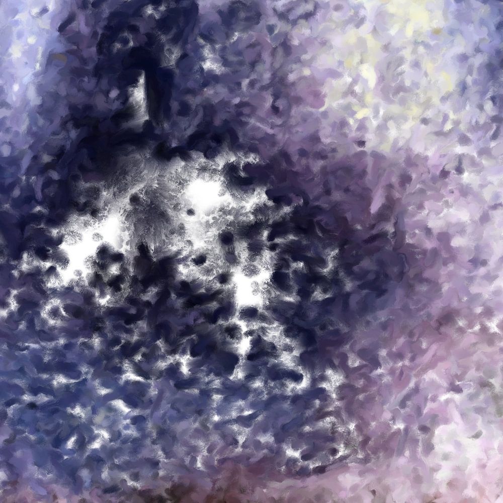 Grunge VII abstract digitale gouache schilderij in paars blauw en geel tinten