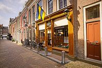 Oude facade van de historisch ingerichte Grutterswinkel Feenstra in Leeuwarden (Friesland, Nederland).