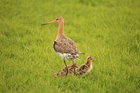 Grutto met pullen prachtige vogel die het dit jaar erg goed doet .De grutto is een oer-Hollandse weidevogel. Nog wel. Want de natuurwaarden van het agrarisch land staan zwaar onder druk. Waar het boerenbedrijf nog ruimte laat voor natuur, daar gedijt de grutto. Zo is hij de ambassadeur van agrarisch land waar productie en natuur in balans zijn. Nergens in Europa broeden zoveel grutto’s als in Nederland. In 2015 is de grutto uitgekozen door het Nederlandse publiek tot nationale vogel.
