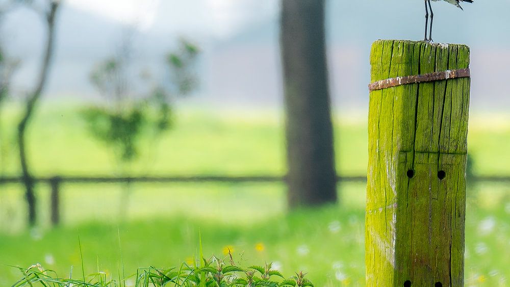 Ik ben op de grond gaan zitten zodat deze mooie vogel los kwam van de groene achtergrond en nu in al zijn elegantie staat te schitteren op de uitkijktoren.